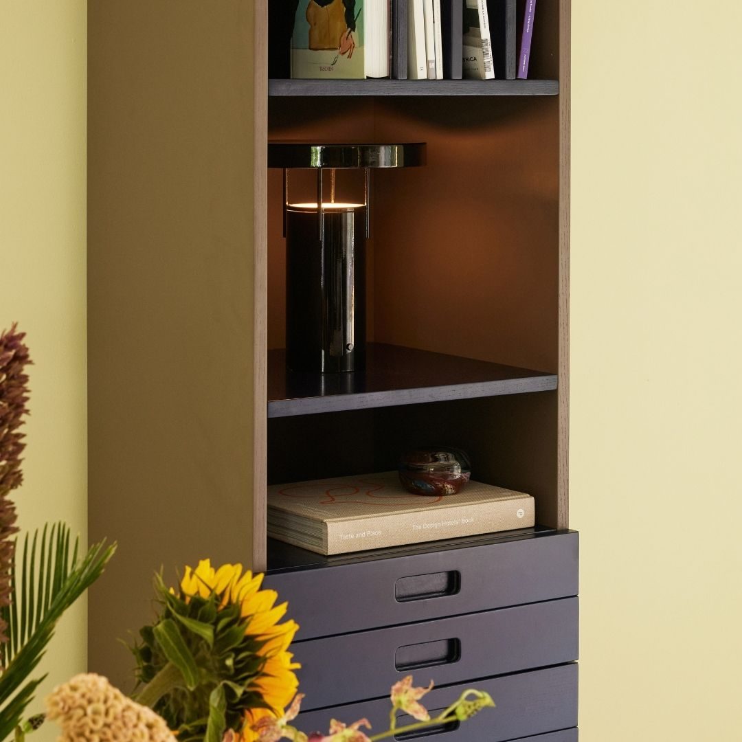 • No quarto ou quarto juvenil como módulo de armazenamento elegante e funcional, combinando com outras peças da série Study ou mobiliário neutro.