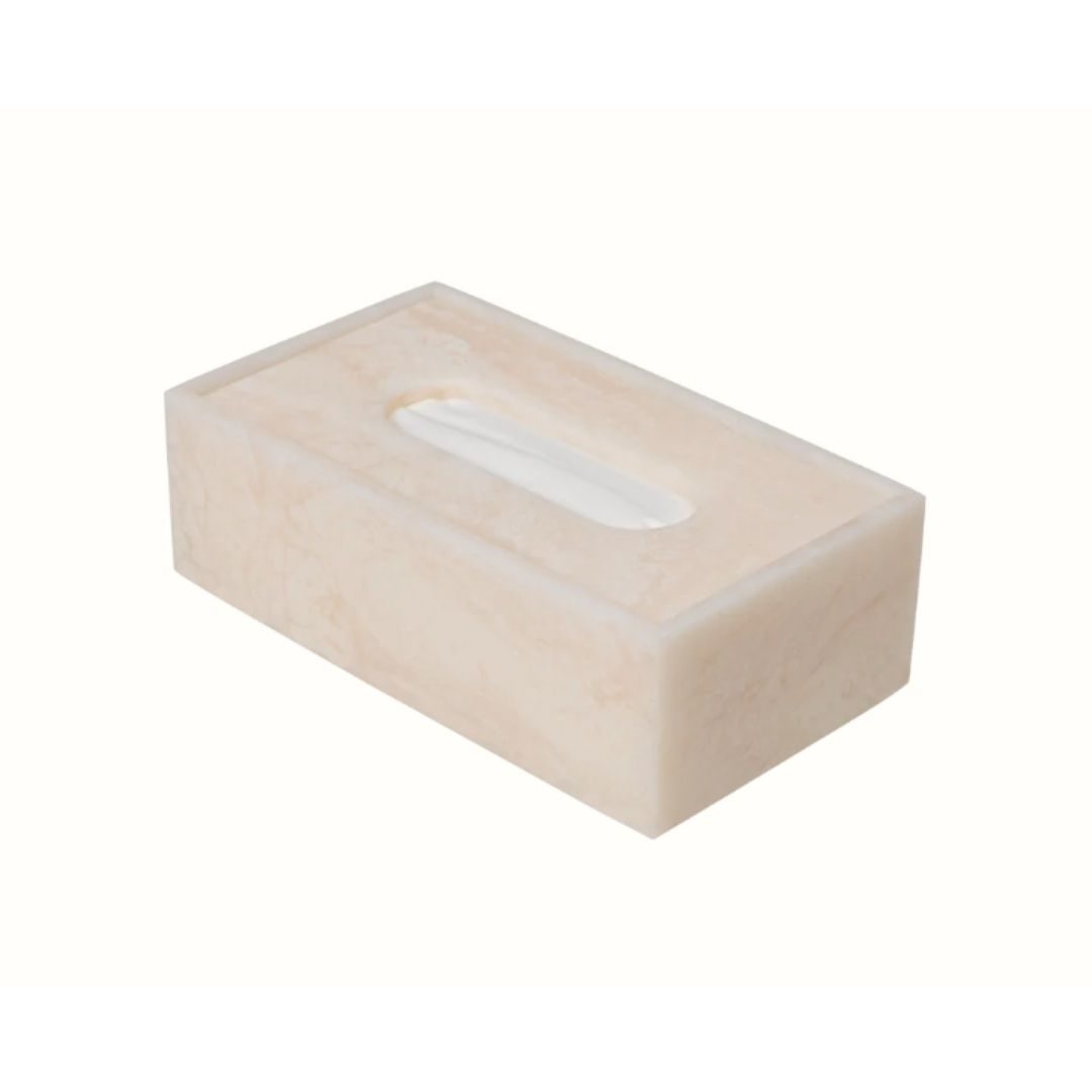 Com medidas compactas (≈ 21,5 cm de comprimento × 12 cm de largura × 7 cm de altura), esta caixa ocupa pouco espaço mas oferece funcionalidade plena. O topo com abertura central permite retirar lenços com facilidade, enquanto a resina confere uma aparência robusta e resistente. A neutralidade de cor facilita a combinação com outras peças decorativas ou mobiliário em madeira, metal ou tons claros.