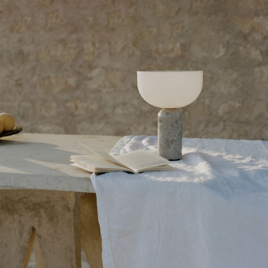 O Candeeiro de Mesa Kizu Portable da New Works combina escultura e funcionalidade. Com base em mármore, iluminação LED dimável de 3 níveis e autonomia até 10 h, é uma peça portátil e elegante que transforma qualquer espaço com luz ambiente refinada.