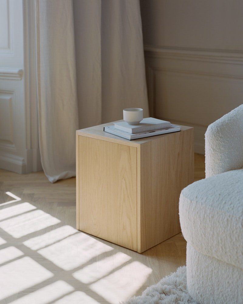 Inspirada na tradição escandinava de materiais naturais e artesanato refinado, a mesa de apoio Mass destaca-se pelas suas linhas geométricas e proporções equilibradas. O folheado de nogueira ou carvalho confere-lhe uma presença quente e sofisticada, tornando-a perfeita para quem procura um toque de elegância discreta.